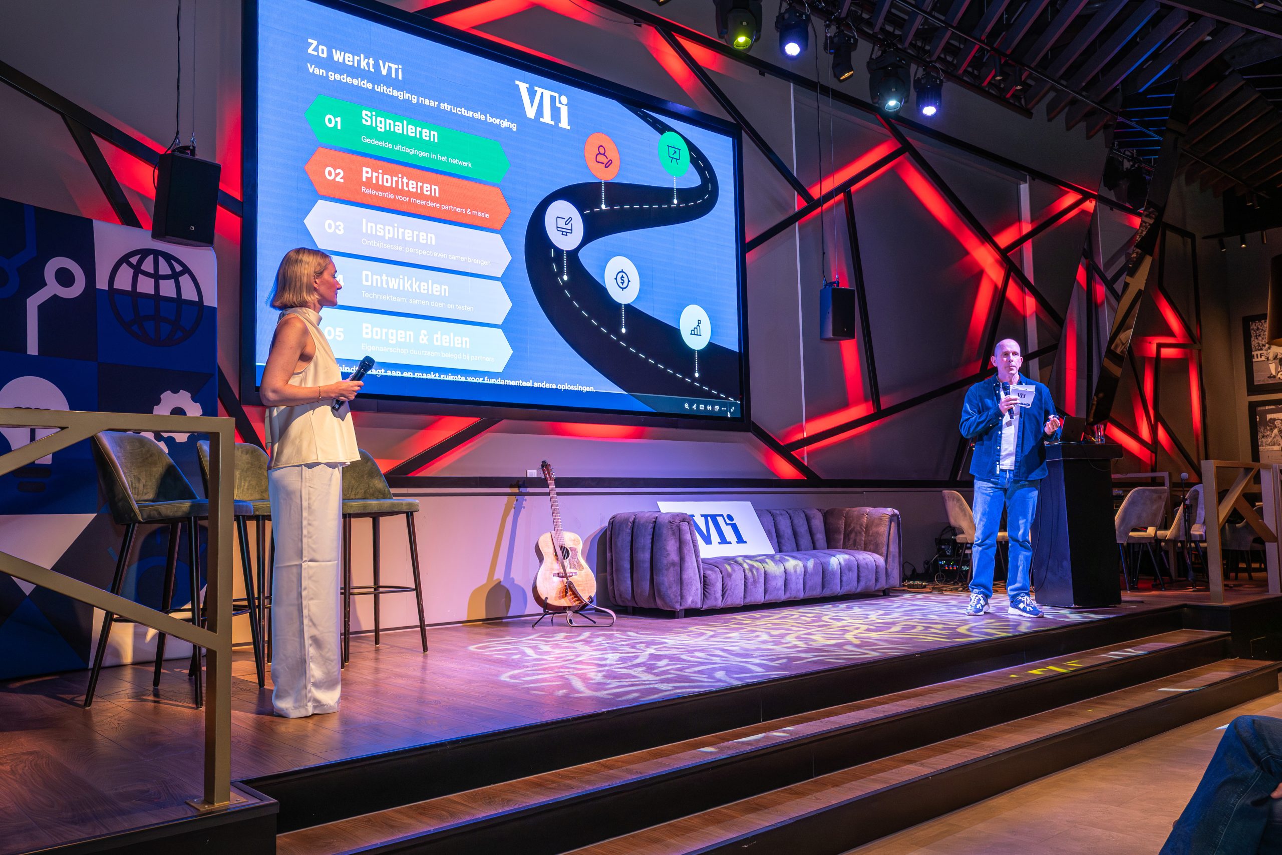 In een dynamisch programma blikten we terug op de ontwikkelingen binnen het VTi-netwerk van het afgelopen half jaar. Van strategische keuzes met het bestuur tot inspirerende praktijkvoorbeelden, zoals ontbijtsessies over AI (Klomp) en talentontwikkeling (INNQ), gastlessen vanuit het bedrijfsleven (o.a. MBS, Megens en Schiphol) en de lancering van de vernieuwde VTi-website met een projectenpagina die inzicht geeft in waar we samen aan werken.