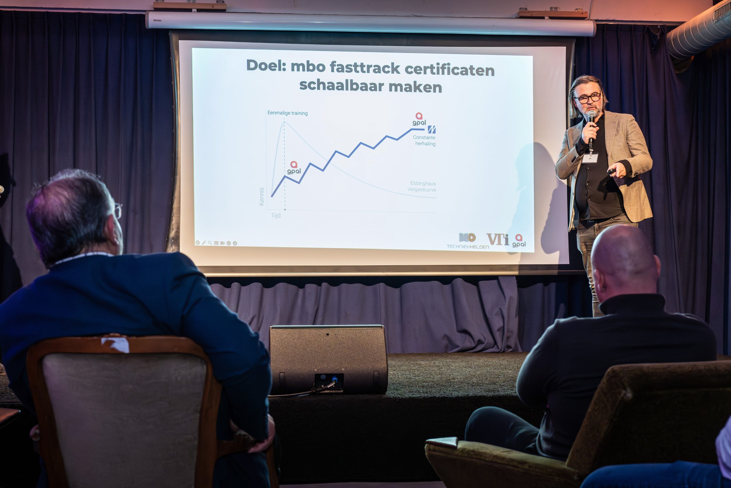 Tot slot presenteerden Arjen Binkhorst (VTi) en Erik Liet (Gpal) de voortgang van de pilots binnen het VTi Fast-Track programma. Zij gaven een sneak preview van de nieuwe opleiding Montage, waarin AI wordt ingezet voor het vertalen van video’s en het genereren van toetsen.